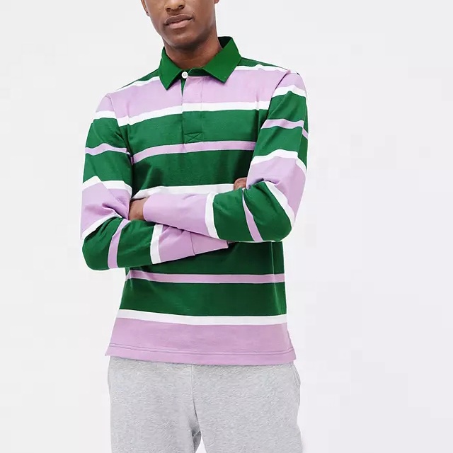 Men 100% Cotton Multiple Color Striped Long Sleeves Rugby Polo Shirt for Men Custom Embroidered Logo