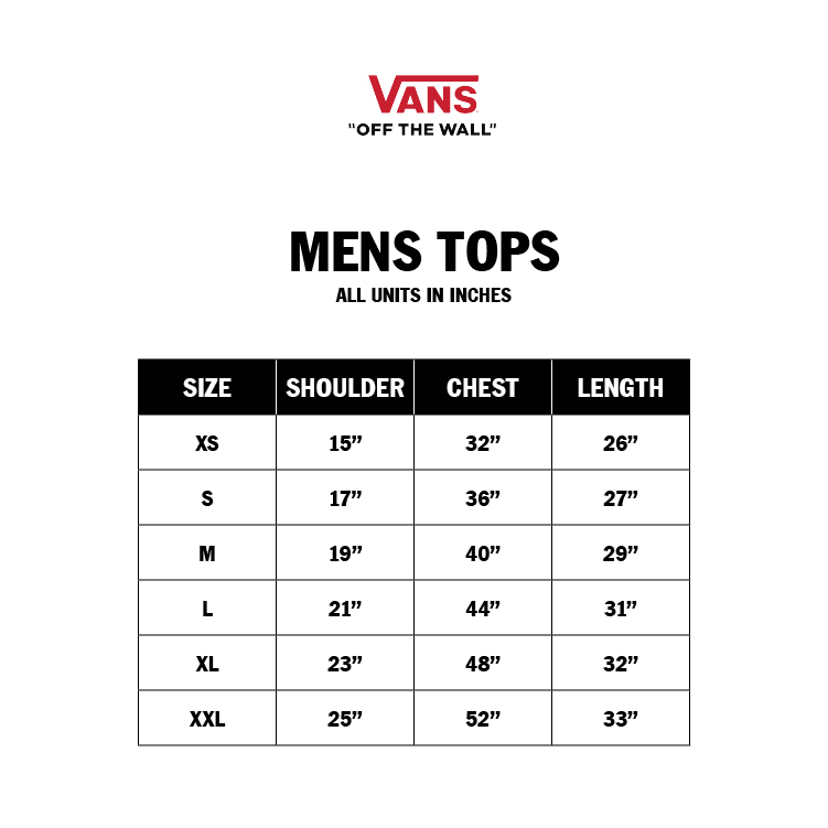 Everyone needs a T-shirt they can rely on. The Off The Wall Classic Short Sleeve T-Shirt will end your search for the perfect tee so you can focus on the more important things. Featuring an interior waffle print that pulls moisture away from the skin, this new 100% cotton tee keeps you comfortable and dry while sturdy-spun yarn provides durability and minimizes shrinking. With a bound rib collar and reinforced shoulder seams, premium Vans trims, an embroidered chest patch, and a checkerboard hanger loop, the Off The Wall tee will be the last T-shirt you will ever need. Fit type: classic. Model is 6 feet tall and wearing a size Medium.