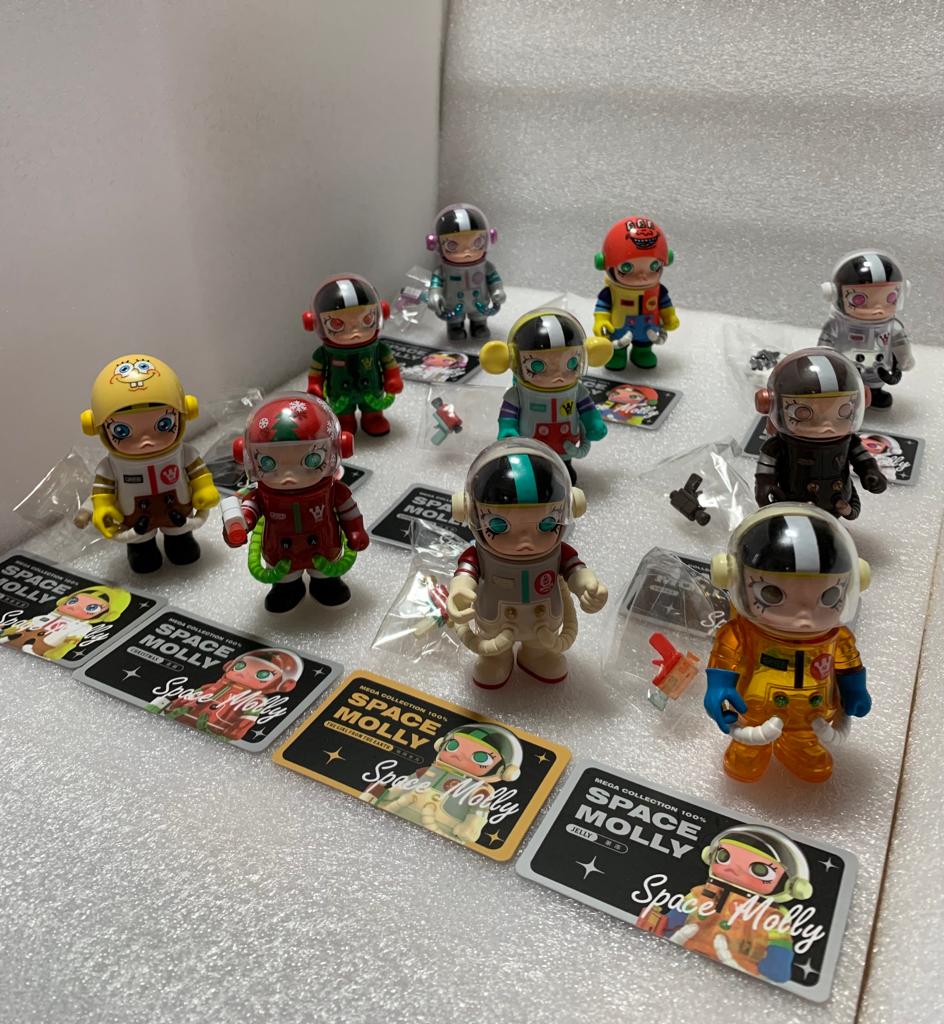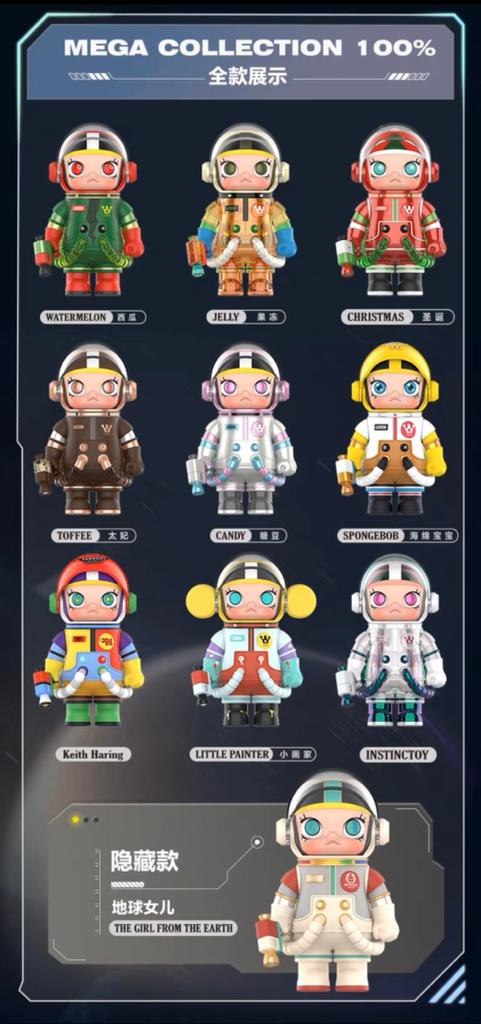 【SG Supplier】*Ready Stock* Mega Collection 100% Space Molly 9 + 1 (Hidden Character) Anniversary Blind Box Bubble Mart + 10 Transparent Casing