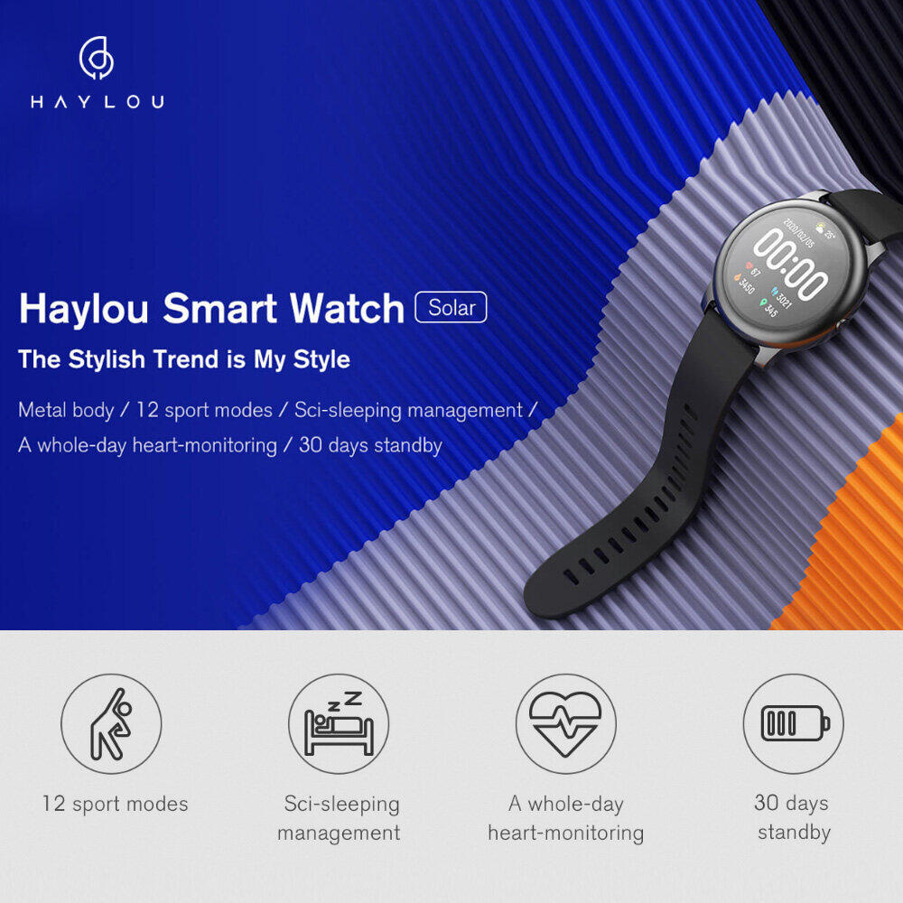 Haylou Smart Watch Solar LS05 12 Sports Modes Music Control Sports Wristband 24H Daily Waterproof Fitness Bracelet