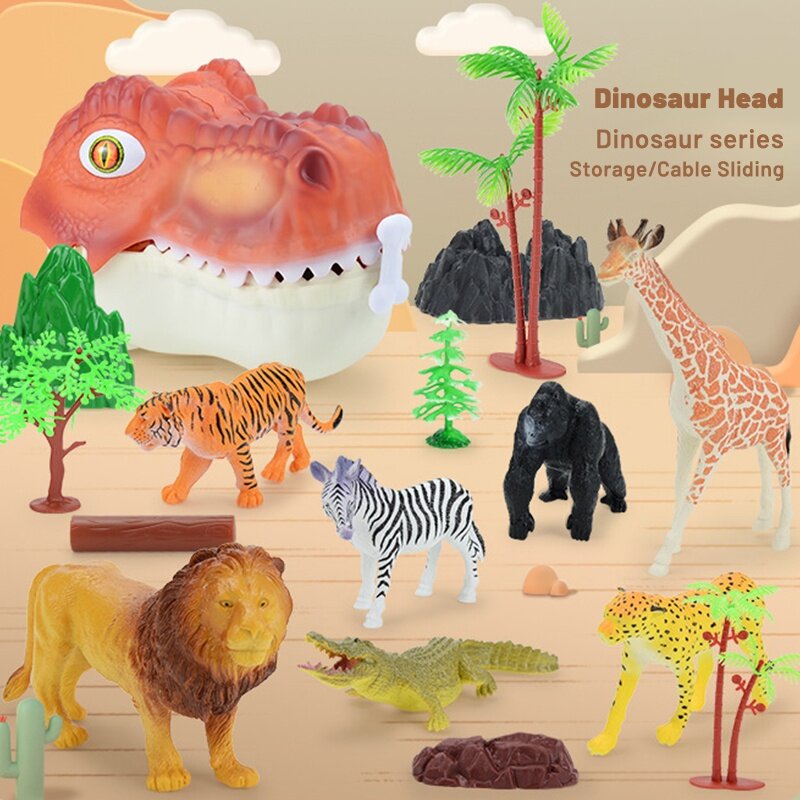 HYG Dinosaur head cover toy 16PCS Large Dinosaur Head Storage Toy Jurassic World Tyrannosaurus Rex Model Set Scene Can be a storage box kid‘s toy boy and girl gift